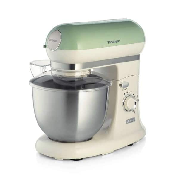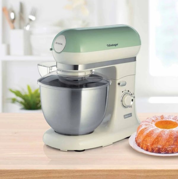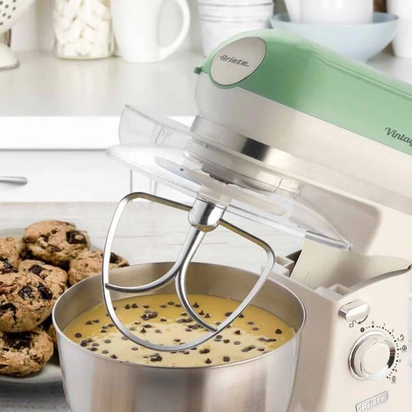 A Batedeira Planetária Ariete 1588 Vintage Verde combina um design retrô charmoso com funcionalidade moderna. Com um potente motor de 600W e uma espaçosa tigela de 5,5 litros em aço inox, ela é ideal para qualquer preparo, de massas leves a pesadas.